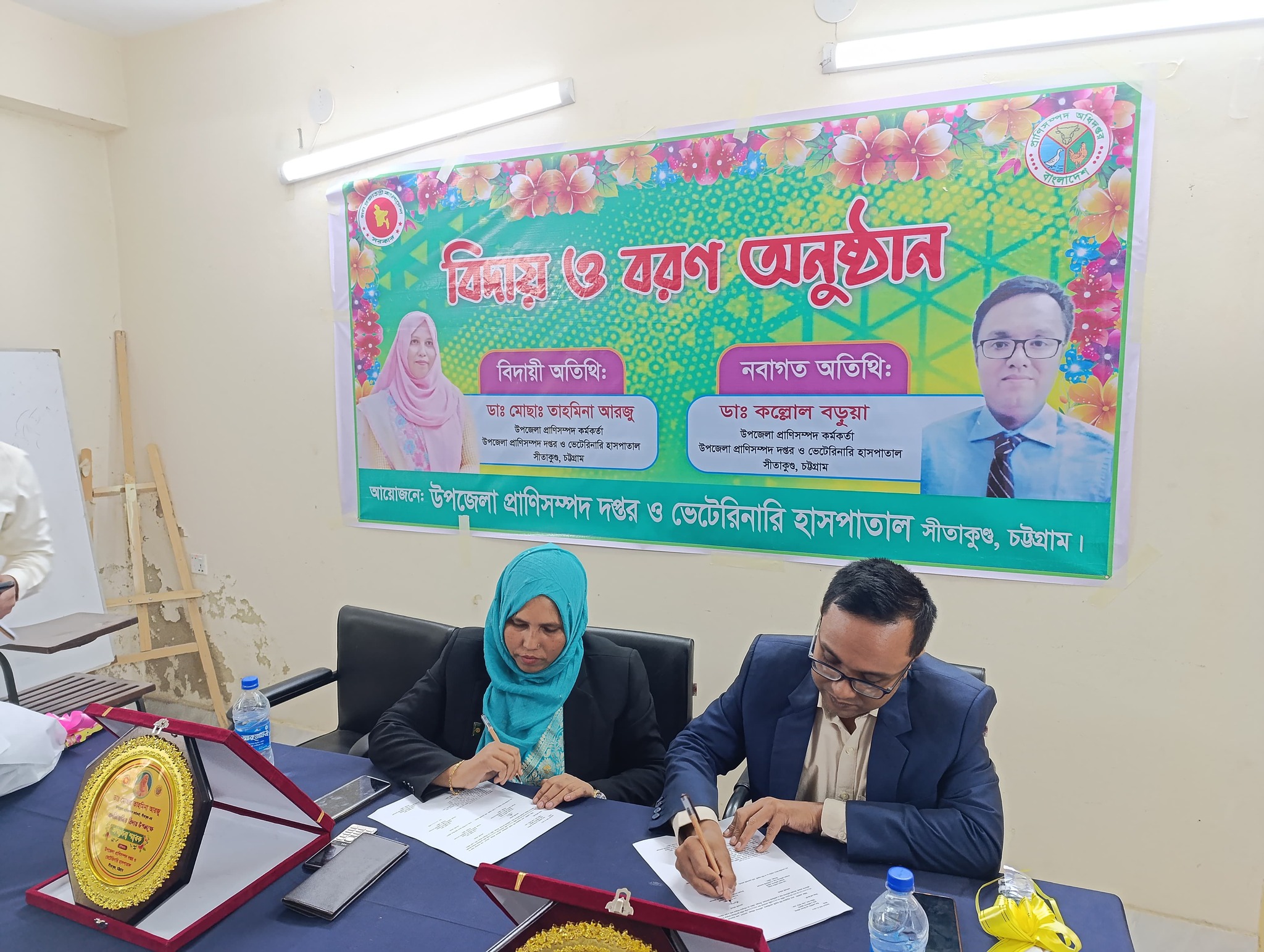 গত 23/01/2025ইং সদ্য বদলীকৃত উপজেলা প্রাণিসম্পদ কর্মকর্তা ডা:মোছা: তাহমিনা আরজু ম্যামের বিদায় এবং নবাগত উপজেলা প্রাণিসম্পদ কর্মকর্তা ডা: কল্লোল বড়ুয়া স্যারের বরন অনুষ্টিত হয়।উক্ত অনুষ্টানে সকল সভাপতিত্ব করেন ডা:প্রিয়াংকা চৌধুরী,এলইও, এবং সঞ্চালনায় ছিলেন জনাব তৌহিদুল আনসার, এফ/এ(এ/আই)।উক্ত অনুষ্টানে সকল কর্মকর্তা-কর্মচারী উপস্থিত ছিলেন।